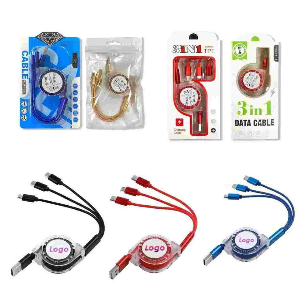 • MirgIndia 3 in 1 Data Cable Multi Retractable 3.0A Fast Charger Cord, Multiple Charging Cable 4Ft/1.