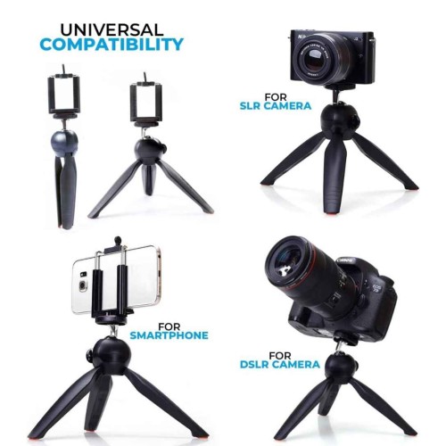 MirgIndia YT-228 Mini Tripod+ Universal Mobile Clip Holder Lightweight Portable for Vlog,Video Shooting,Photography etc Fits for All Mobile Phones,Action & DSLR Camera's - (Black)