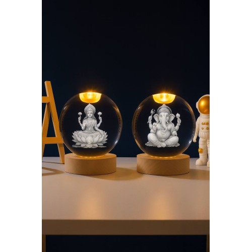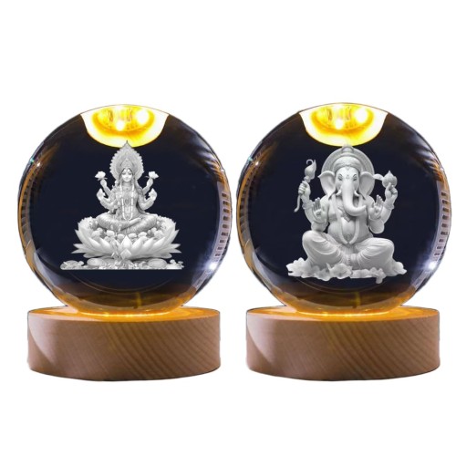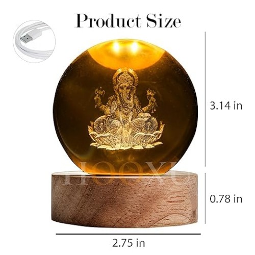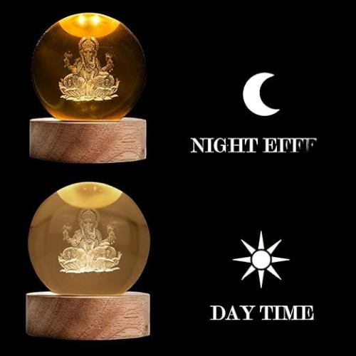 • MirgIndia 3D Crystal LED Ganesha Luxmi Engraved Crystal Ball Night Light – Beautifully Designed with
