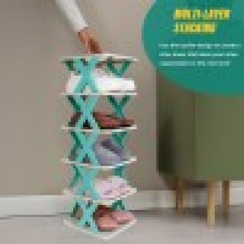 MirgIndia 6 Layer Shoe Rack for Home Plastic, Adjustable Stand Organizer Stackable Storage Bedroom Entryway Shelf Footwear Collapsible Corner Tower Shoes and Book Slots Rack