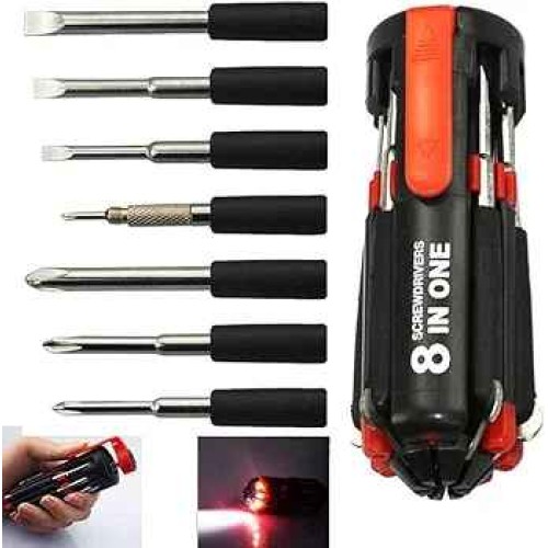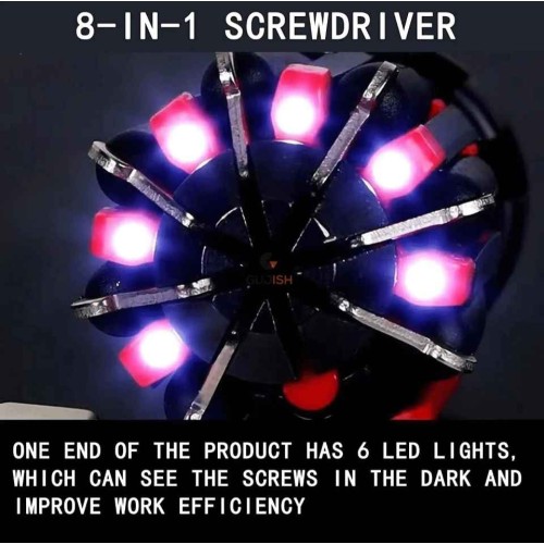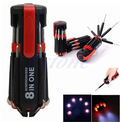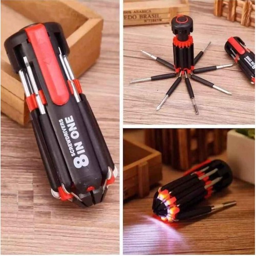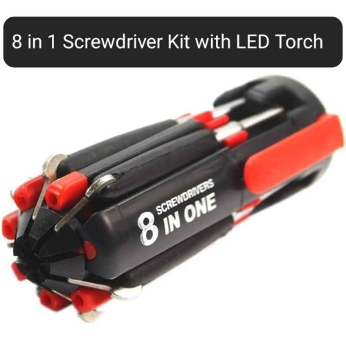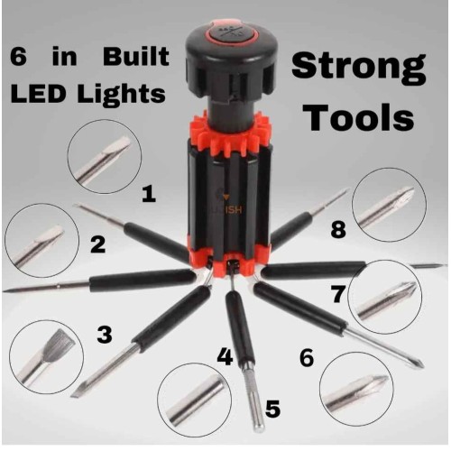 MirgIndia 8 in 1 Portable Screwdriver Tool kit | Multifuction Screwdriver Set | Hardware Repair Tool with 6 LED Torch Combination for All Household, Car, Bike (Pack of 1, Black)