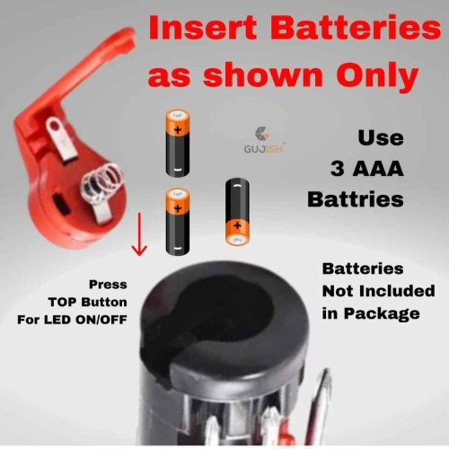 8 Interchangeable Bits: Includes a range of Phillips, flathead, and Torx bits for versatile use. To insert batteries remove clothes clip and insert 3AAA batteries as indicated.