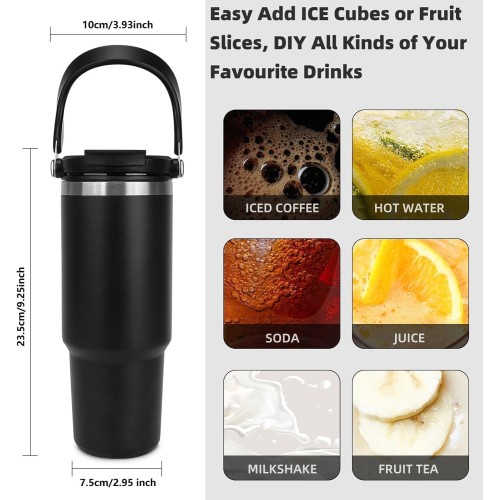 MirgIndia 900 ml Stainless Steel Insulated Tumbler with Straw | Leak-Proof Hot & Cold Flask with Lid Straw & Handle | Double Wall Vacuum Travel Mug  | Leak-Proof, BPA-Free  | For Gym Office & Outdoor Mug | BPA-Free Travel Mug for Gym, Office, School, Car |