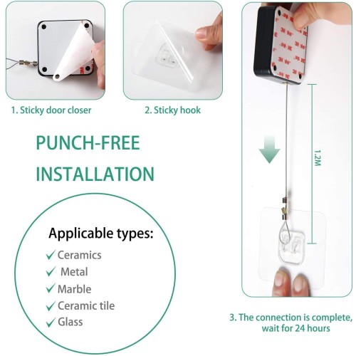 · 1��Package ContentsYou'll get 1 pcs of punch-free closer with steel rope, 2 pcs of adhesive hooks, and1pcs of small Allen keys10 protective pads.