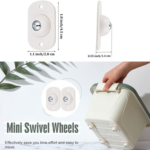 ��Low Profile Casters Quality MaterialOur upgraded self adhesive caster wheels are made of high quality metal and thick ABS material, stick on wheels which is sturdy and durable. No more worrying about furniture being too heavy to move when mopping the floor! adhesive wheels your furniture and appliances easy to move and rotate 360°freely.