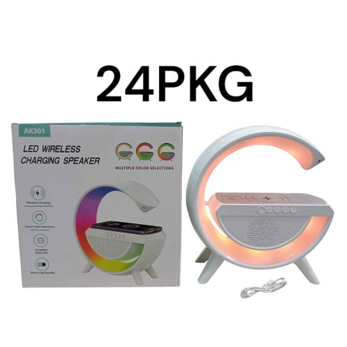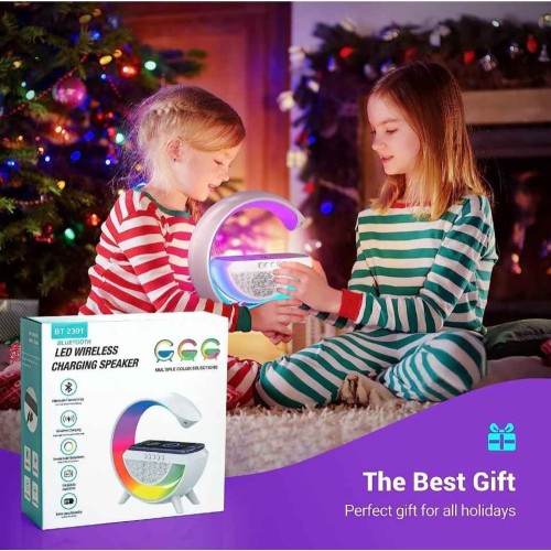 MirgIndia Google Speaker Mobile Charger with RGB lite G-Shaped 3 in 1 Bluetooth Speaker with FM Radio, RGB Light Table Lamp, Wireless Charger LED Smart Wake Up Light, 15W Wireless Charger Loud Speaker for Home Decoration, Bedroom & Gaming Room