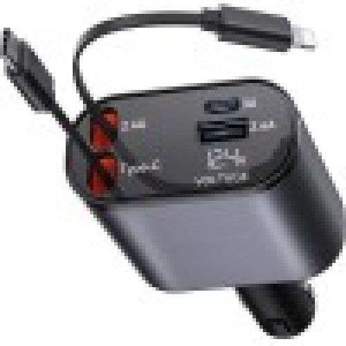 💡【Built-in 2 Retractable Charging Cables】Our Retractable Car Charger comes with one Type-C cable and one Lightning cable, free retractable up to 31.5inch, easy charging in the back seat, free from forgetting to bring the charging cable, keep the car neat and tidy. 💡【Real Super Fast Charging】Maximum power 66W, the charger also has a USB-C PORT AND USB PORT, which can safely charge up to four devices at the same time, ordinary car chargers are 5 times faster, no need to wait when you are in a hurry to charge instantly. 