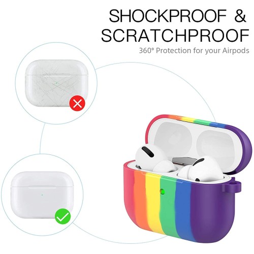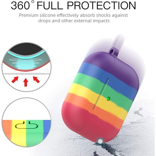 MirgIndia AirPods Pro Cover Silicone Skin Case Cover Portable Silicone Skin Cover with Keychain Carabiner (Supports Wireless Charging) Compatible with Airpods Pro (2025) - (Rainbow)