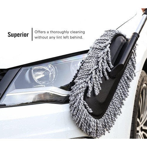 33" EXTENDABLE CAR EXTERIOR DUSTER - Cleaning exterior auto duster is made of thickened stainless steel telescopic rod is sturdy, car brush exterior retractable length is 27"-33". Extended duster is great for getting into hard to reach areas. perfect for dusting off your car or truck.