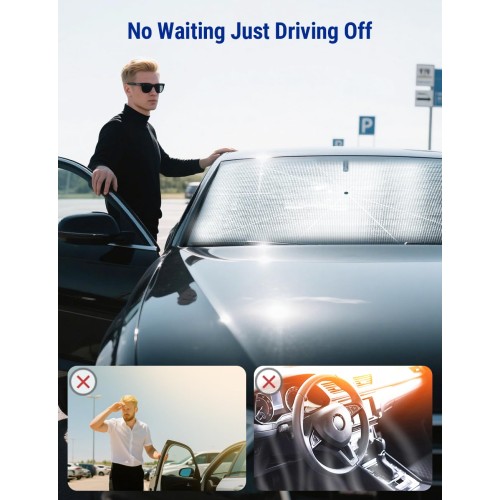 • Compatible with most auto: This car sun shade fit the front windshield of most cars, including Sedan, trucks, SUV, RV, minivans or vans.