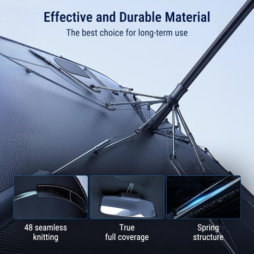 • Easy to fold and store: Foldable car umbrella, very easy to open and close. A leather storage bag is included in the packaging for more convenient storage. Save space inside your car.