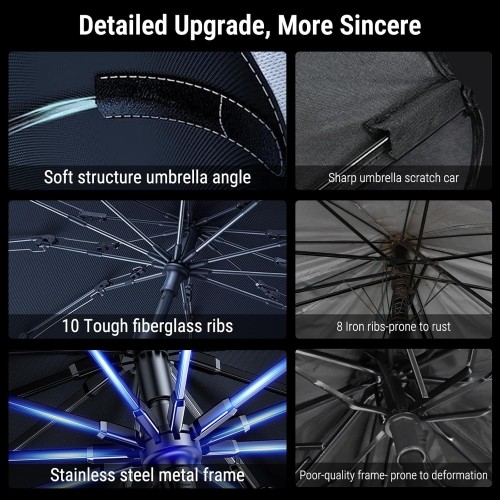 • Protect Your Car: Our car umbrellas prevent your car from overheating when you park in the open, keeping your car cool and comfortable. At the same time, prevent fading and cracking of the instrument panel and seats due to the sun.