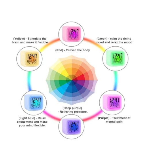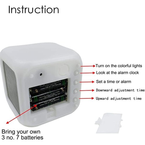 Key Functions Simplified: The Digital Clock for Desk comes with user-friendly buttons that make setting alarms, changing LED colors, and adjusting brightness levels a breeze. It's designed to be easy and intuitive for everyone. Visual Appeal: Beyond telling time, this Digital Desk Clock is a visual delight. With its multicolored LED display, it adds a touch of vibrancy and style to your desk. Wake Up to Music: Start your day on a pleasant note with the clock's alarm function, complete with soothing music options. If you need a few more minutes of rest, simply hit the snooze button.