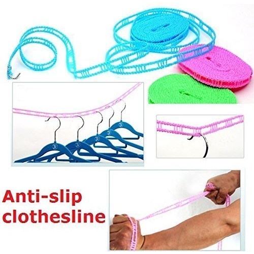 MirgIndia Cloth Line 5 Meter 1Pc 5 Meter Clothesline Creative Useful Durable Nylon Non Slip Laundry Lingerie Underwear Camping Travelling Indoor Outdoor Clothes Drying Rope Line with Metal Hooks at end