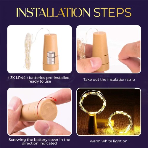 Package Contains : 1 Warm White Cork Light with Battries, 2 Meter with 20 LEDs (Bottle not included)