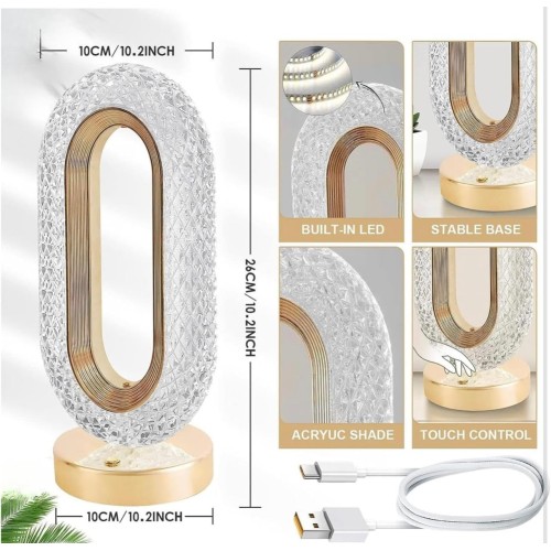 • MirgIndia Crystal Lamp Oval Design with 3 Levels Brightness Rechargeable  for Living Room Decor | Ni