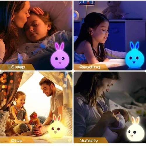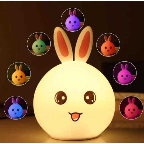 MirgInda Cute Cute Silicone Night Lamp for Kids,Silicone Cute Little Rabbit LED Table Lamp, Birthday Gift for Kids (2-5 Years), Colour Changing with USB Rechargeable Night Light(Rabbit Lamp), Multicolour.