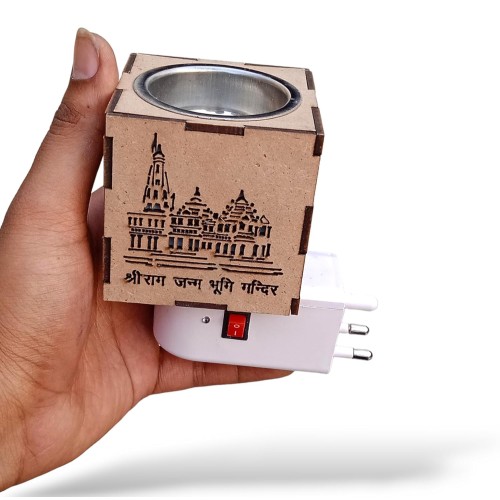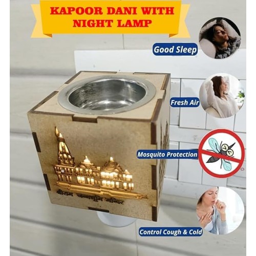 MirgIndia Ram Mandir Kapoordani With Night Lamp Premium Wooden 3in1 Ayodhya Ram Mandir Electric Home Fragnance Lamp with Night Lamp, Shri Ram Ayodhya Mandir Incense Holder for Home, Office, Living Room, Kapoor Dani, Rectangular (Pack of 1)