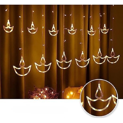 Diya Curtain LED Lights with 6-Big 6-Small Diya