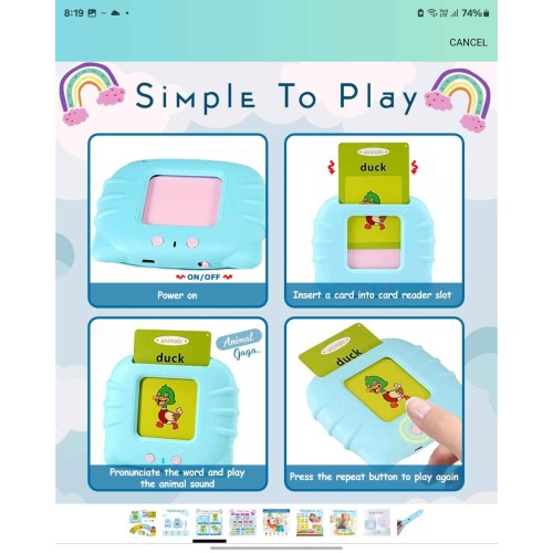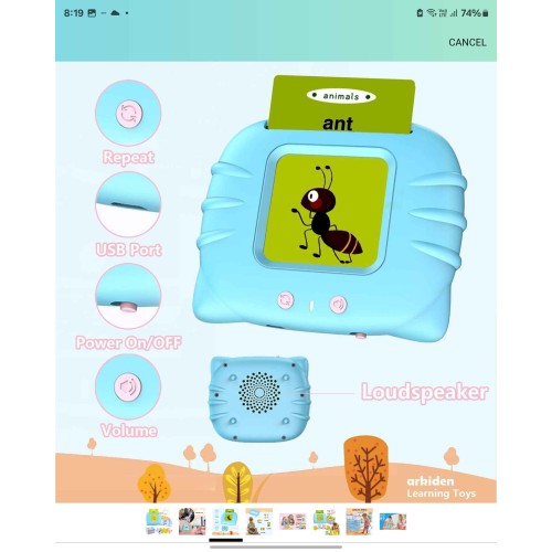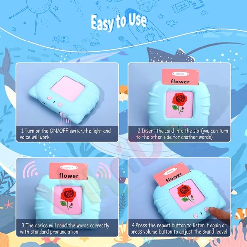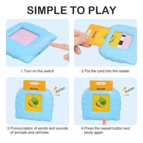• 🔊 Clear Voice Pronunciation – Each flash card plays accurate pronunciation when inserted into the reader, helping kids improve speech, vocabulary, and listening skills naturally.