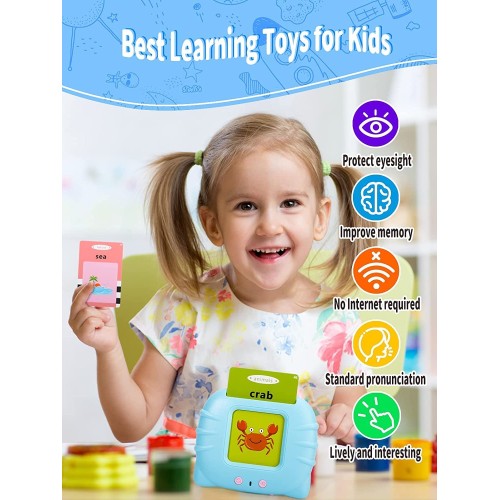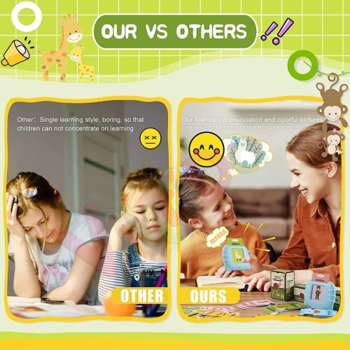 • 🧩 Interactive Talking Flash Cards Set – Includes 112 double-sided cards with 224 words covering animals, foods, objects, vehicles, and more, making early learning fun and engaging for toddlers.