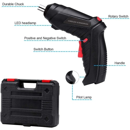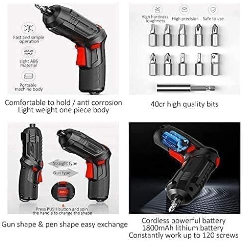 · ➽ LED lighting and USB Charging ↠ The electric screwdriver of the built in LED light is safe, a great help when you are in a dark environment, the 1800 mAh battery and USB charging allows you to work without being bothered by low battery and wires, and it charges with only a normal micro USB charging cable, connected to a computer, USB plug, etc.
