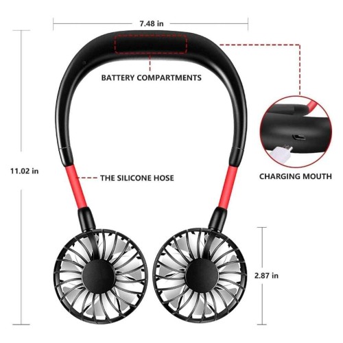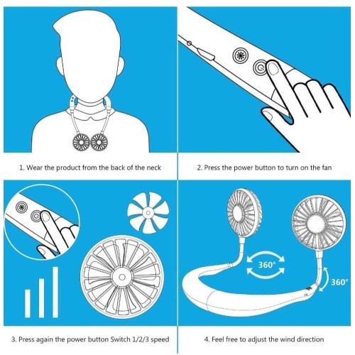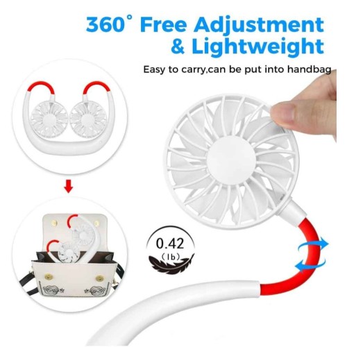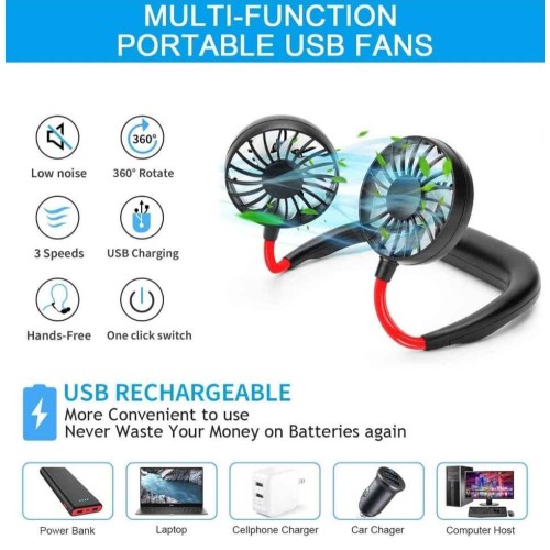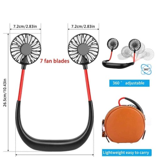 ·  360° Adjustable Dual Fans – Two flexible fan heads rotate independently to direct airflow exactly where you need it. Enjoy custom comfort with adjustable angles for face, neck, or shoulders