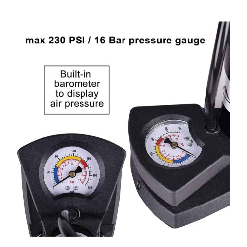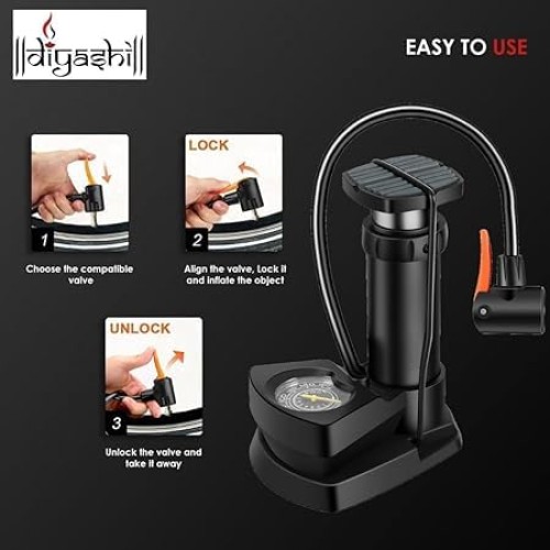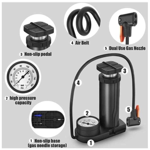Versatile Pump for Various Applications : Imported portable high pressure foot air pump is designed to cater to multiple needs. It can be used for inflating bicycle tires, car tires, motorbike tires, and even footballs. It's a versatile pump suitable for various applications.
