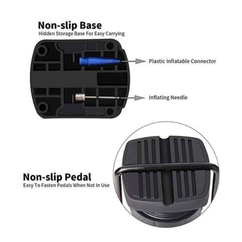 Portable and Easy to Use : It's lightweight and compact, making it easy to carry and store. Additionally, the pump is user-friendly, with a simple foot pedal design that allows for effortless inflation without straining your hands or back.