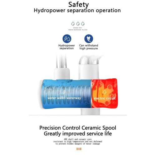 Experience hot water in just 3 seconds with this powerful 3000W electric tap, perfect for tasks like washing dishes, vegetables, or quick clean-ups. The tap features anti-dry protection and built-in leakage safeguards for enhanced safety. Its high-pressure waterproof design ensures durability and reliability for everyday household use, including bathing..
