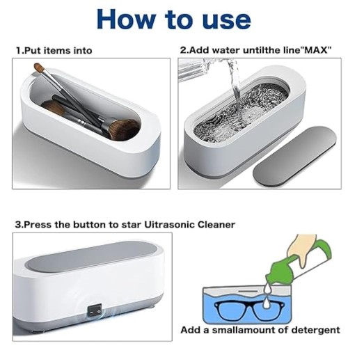 This ultrasonic cleaner can be used to clean dirty jewelry, eyeglasses, watchband, dentures, tableware, nipple, and more in minutes using only tap water. Using this cleaner, you will have a new pair of glasses every morning.