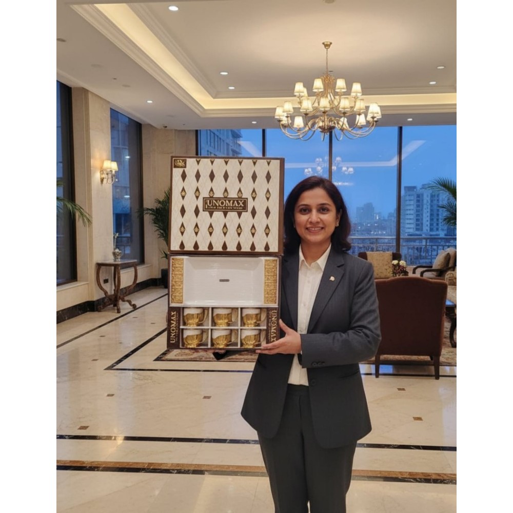 • MirgIndia UnoMax 6Pc. Mug & 1 Pc. Platter Premium Cups with Golden Leaf Design & Rim|Elegant Designe