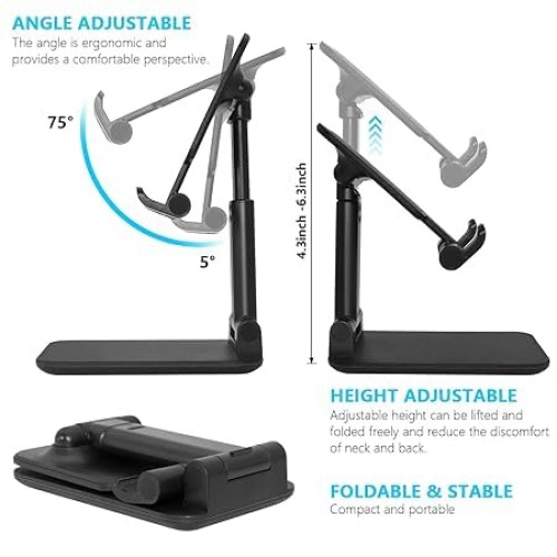 • MirgIndia Folding Desktop Moblie Stand Angle Height Adjustable Mobile Phone Holder for Desk, Office,