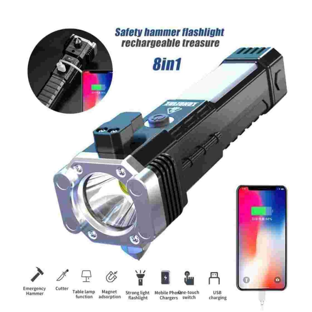 MirgIndia Hammer Torch LED Light orch Lights Rechargeable | with SOS Mode | 7 Mode LED COB | with Hammer | Seat Belt Cutter Built | Plastic Body | ,Long Distance Beam | Range Car Rescue Torch Built 17 * 5 cm (1 Led)