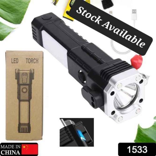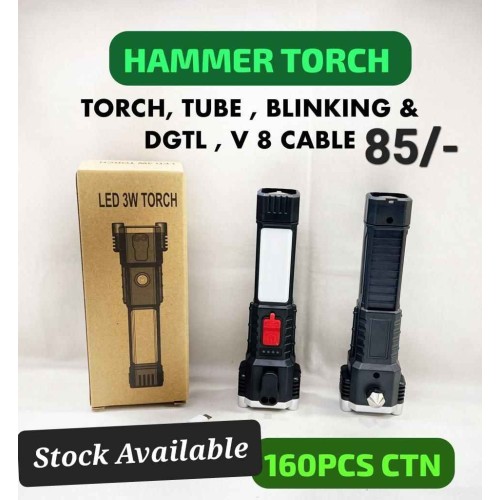 • MirgIndia Hammer Torch LED Light orch Lights Rechargeable | with SOS Mode | 7 Mode LED COB | with Ha