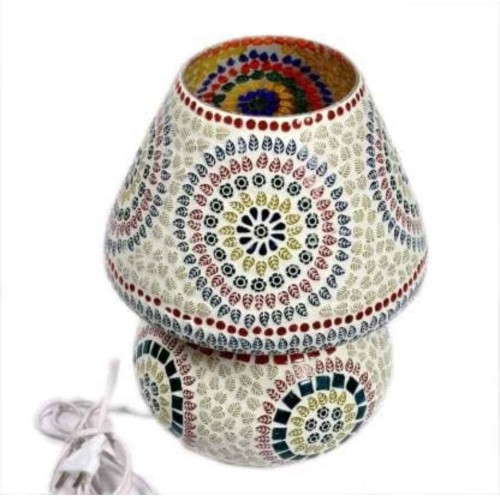 • Mirgindia Handcrafted Glass Table Lamp 6.5 Inches Mushroom Shaped Glass Table Lamp - Turkish Style,