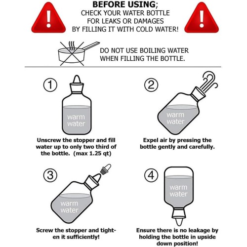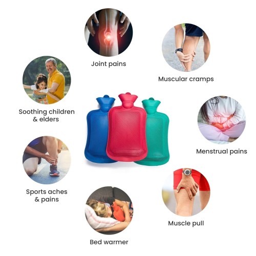 ·        Versatile Hot and Cold Therapy: Hot Therapy: Fill with hot water to relax tense muscles, improve blood circulation, and warm up during cold weather. Cold Therapy: Can be used with cold water or ice for reducing inflammation, soothing injuries, and relieving headaches.