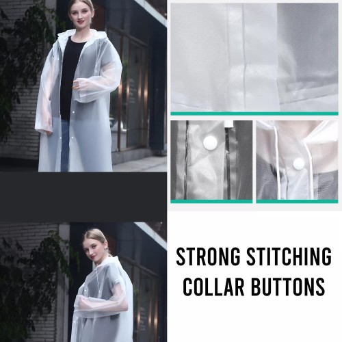 REUSABLE & DURABLE: Unlike ordinary disposable raincoats, this clear raincoat for men & women is not only quick-drying but also reusable. High-quality EVA material allows it to be recycled for long periods of time. With this rain jacket, you don't need to worry about purchasing raincoats again and again, saving your money effectively.