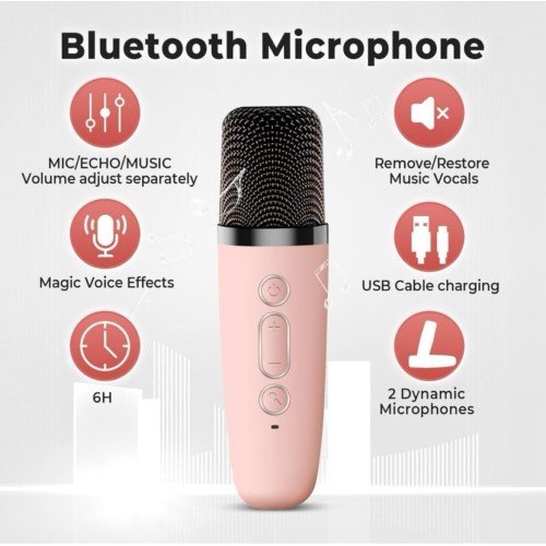 Cool Dynamic Light- The bluetooth kids microphone karaoke machine has fun LED light effects and comes in a few different colors fora fun party atmosphere no matter where you are.Top 2024 christmas gifts for kids.