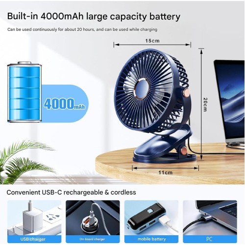 · Fast Charging】:This battery fan supports 5V-2A fast charging, which can be fully charged within 3 hours. Coming with USB Type-c charging port, the USB fan's charging port compatible with multiple devices including laptops, cell phone adapters, mobile power and USB charger.