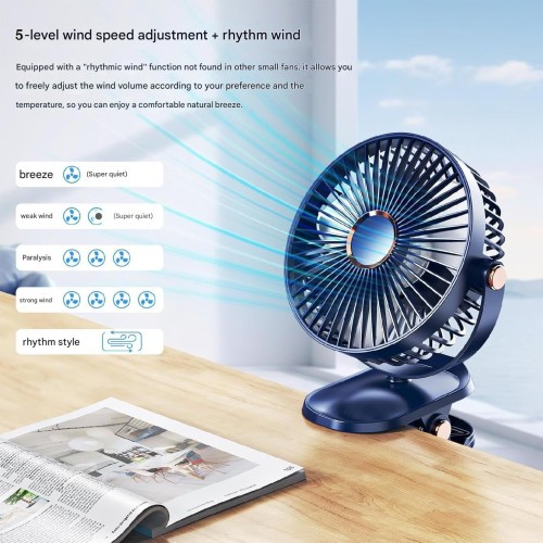 · Rhythm Style & 5 Adjustable Air Flow Levels】:This mini fan clip fan is equipped with a rhythm style that reproduces a comfortable natural wind that other small fans cannot have, making it the perfect function for sleeping or napping. You can switch between 5 air levels, between soft wind, medium wind, strong wind, and rhythm wind. You can freely choose your favorite wind according to the location and heat.