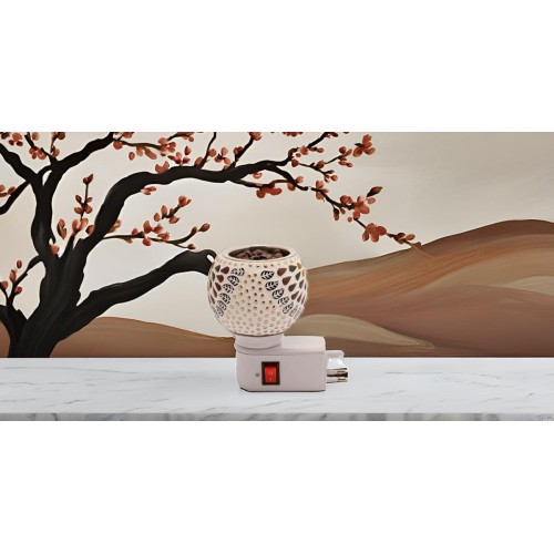 MirgIndia Beautiful Ceramic Aroma Diffuser/Kapoor Dani Cum Night Lamp Made in India Hand Made Oil Burner Camphor Diffuser & Night Lamp with Switch ON/Off Button for Heating Ceramic Material I  ( Pack of 1..)