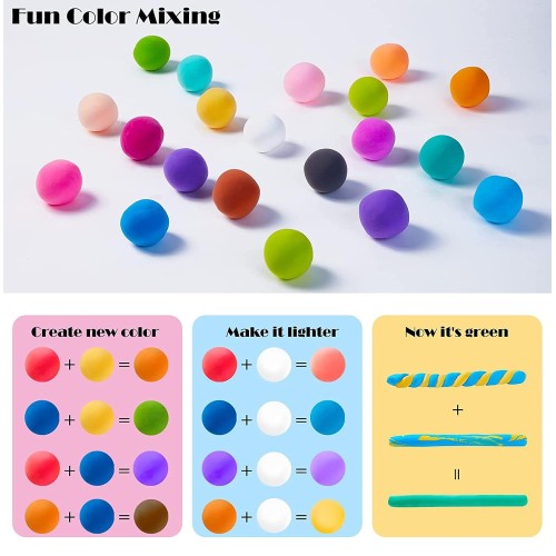 · ★LEARNING AND EDUCATION: For junior sculptors: The clay is great fun to play as well as will Develop child's creativity, operational ability, observational ability, communication and cooperation skills. Enhance your child's ability to recognize different colors and the differences in shape, size, and textures Parents can play with their children, so as to narrow the distance between them & there child.