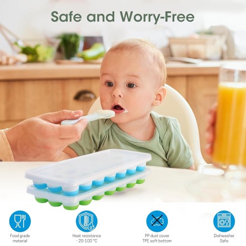 Durable & Quality--High-toughness silicone bottom ice cube trays are unlikely to crack or break like stiff plastic trays after freezing. Resistance to low/high temp (-4℉~212℉), safe in dishwasher.