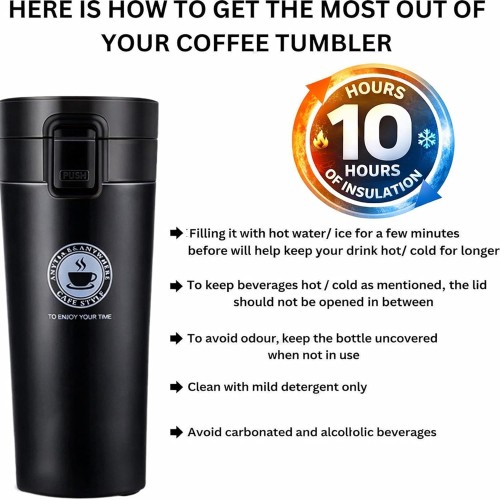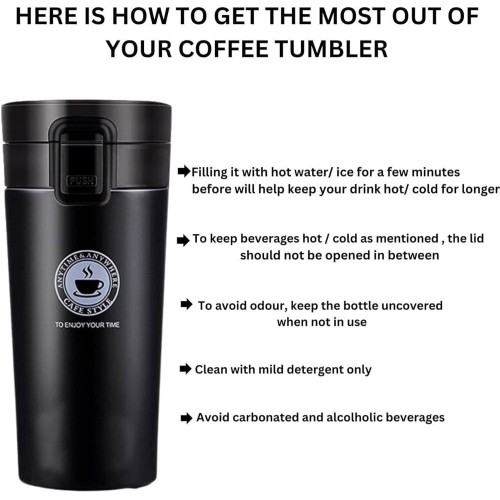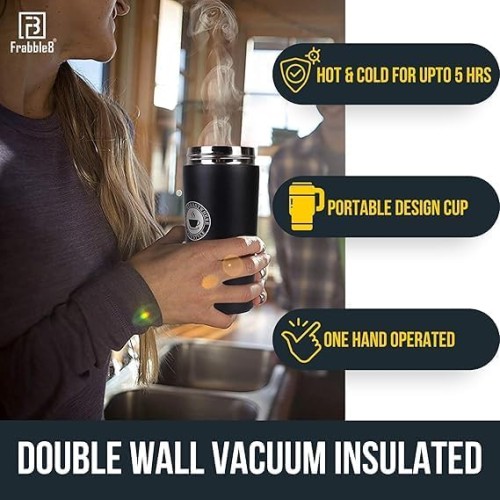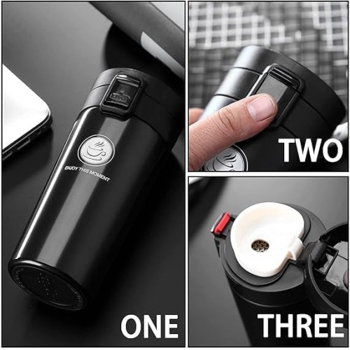 MirgIndia Vacuum Insulated Cake Coffee Cup Coffee Mug Double Wall Stainless Steel Vacuum Flask Bottle Insulated Cup with Leakproof Lid Layer 4-6 Hour Insulation Reusable for Hot Cold Thermal Mug,Travel Mug,Vacuum Coffee Camping (Black)