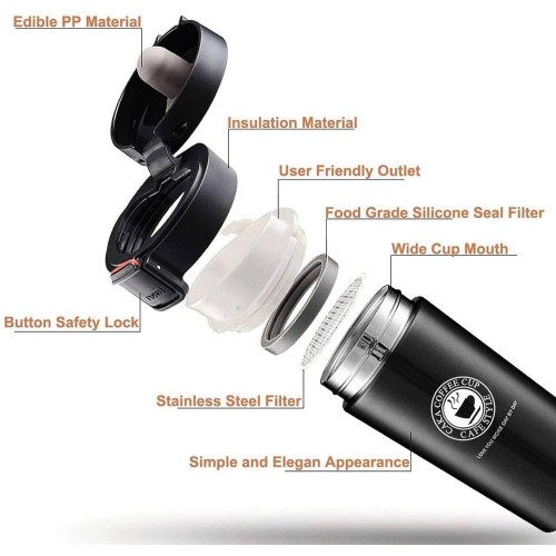 · Reusable: Double-wall coffee cup is made of high-quality stainless steel and food-grade PP with a BPA-free polypropylene lid, durable and prevents the spread of bacteria.