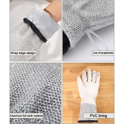 • Mirgindia Jali Gloves Dish Washing Aluminium Dishwashing Hand Gloves Non Scratch Wire, Waterproof Ho