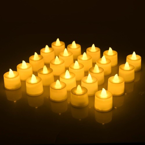 · PACKAGE INCLUDES: 24 Pcs LED Tea Light Candles SIZE & COLOR: Each candle measures approx. 5 cm in diameter, comes in a bright and festive Yellow shade.