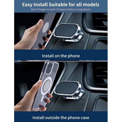 · ��Small and Easy to Install: Magnetic Car Cell Phone Mount is portable accessories and only the size of chewing gum. It will not block any view when driving. Comes with 360-degree adjustable connector ball, adjust the angle of the phone at will.Please find detailed installation illustrations on the product page, proper installation can avoid a lot of unnecessary troubles.