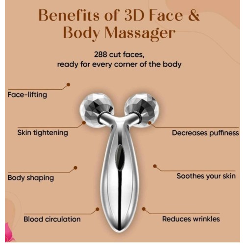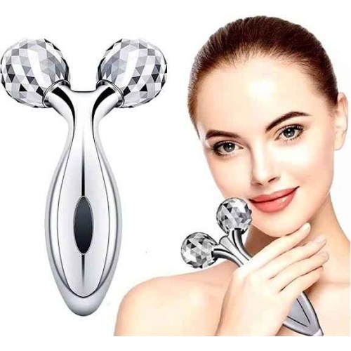MirgIndia 3D FACE BODY ROLLER MASSAGER Manual 3D Massager Roller 360 Rotate Face Full Body Shape Skin Lifting Wrinkle Remover Facial Massage 3D Roller Face Massager Y-Shape Face Lift Tool Firming Beauty Massage Body Face Massager - Silver -pack of -1 | Face Roller For Glowing Skin Relaxation.